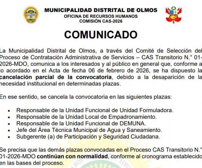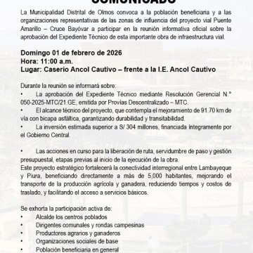 Queridos vecinos y vecinas del Distrito de Olmos,